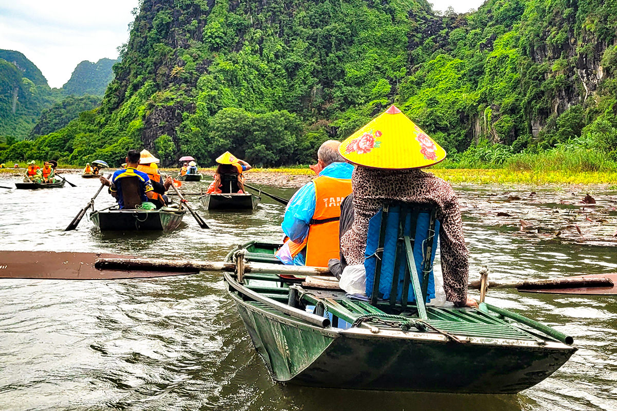 Po zajtrku se z našim privatnim vodnikom in avtobusom odpeljemo proti provinci Ninh Binh, približno 100 km južno od Hanoja, kjer nas čaka vožnja s čolnom po reki Hoang Long skozi čudovito pokrajino Tam Coc – Bich Dong sredi kraškega gorovja, raztresenega po bujnem mokrišču z riževimi polji. znano tudi kot »kopenski Ha Long zaliv«.